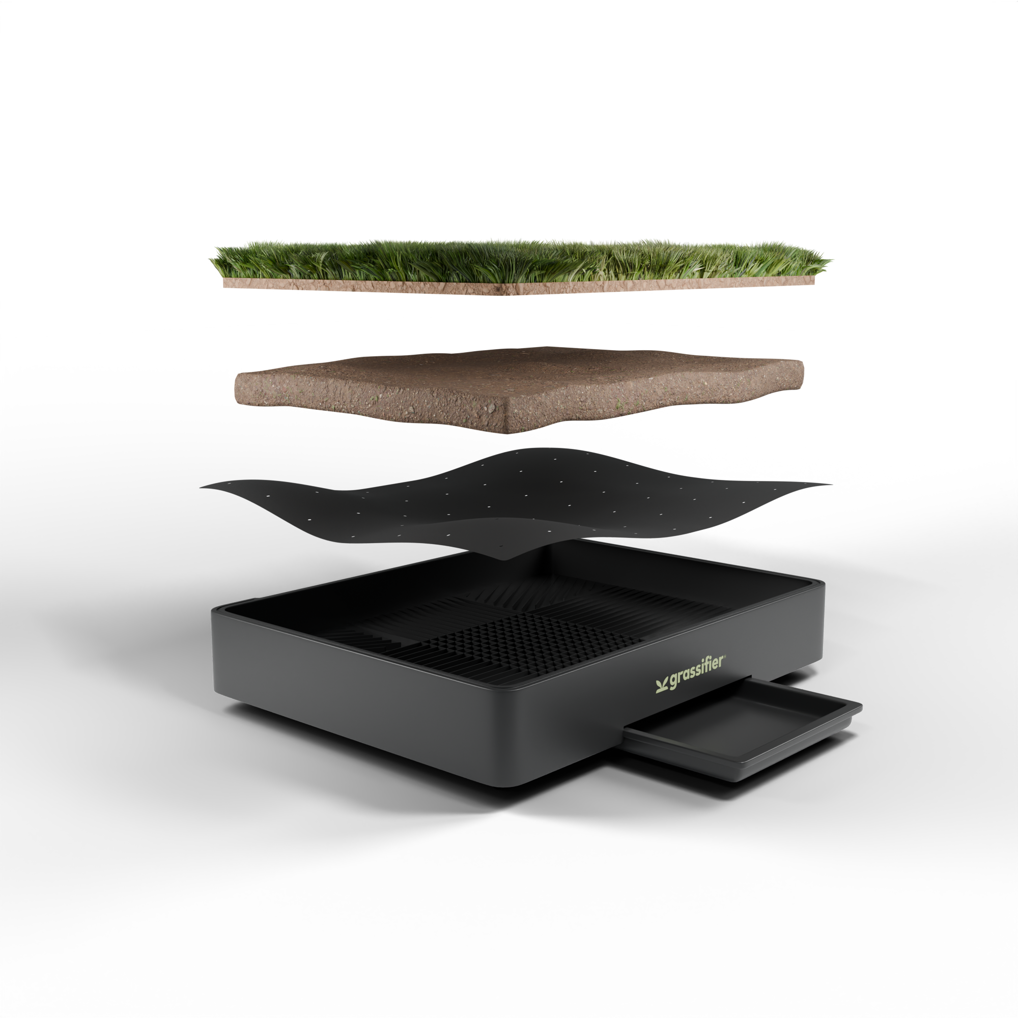 The RGPP: Grassifier uses an elevated, ventilated platform with a built-in slope that guides liquid into a hidden catchment tray. This keeps the turf drier, improves airflow, and stops waste from pooling - all part of our purpose-designed drainage system.