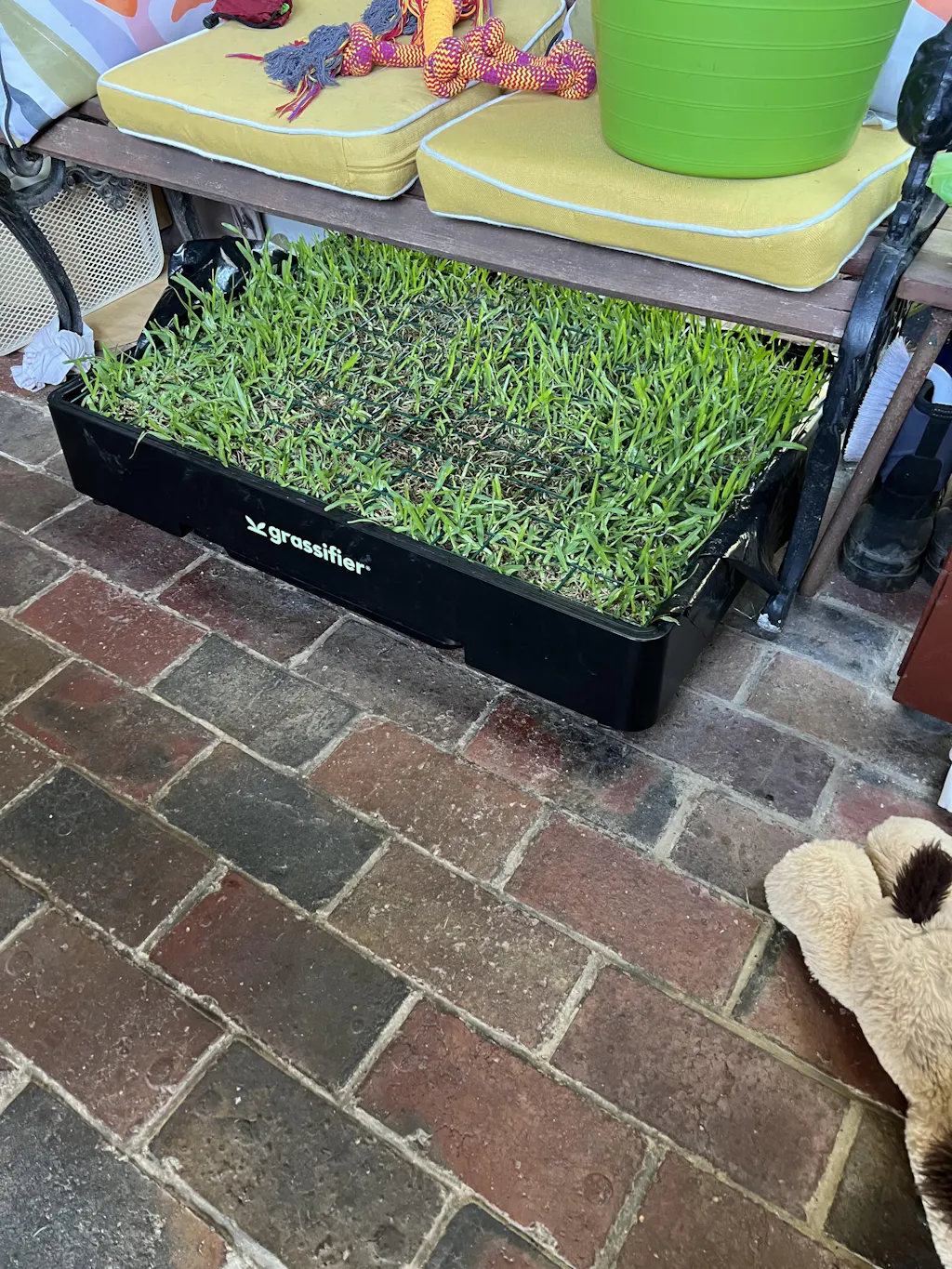 Our dog is 14 years old and requiring toileting more often. As we live in an apartment building, he needs to be taken out for walks/ toileting. But thanks to the Grassifier he can just step out onto the patio and use the potty. So convenient and the use of fresh grass leaves no odours. So easy to maintain. We were worried he might not adapt to using the potty as he had grown up with a backyard lawn and refused to use pee pads when we first moved into an apartment but surprisingly it only took 2 days before he discovered this very useful potty. Money well spent!